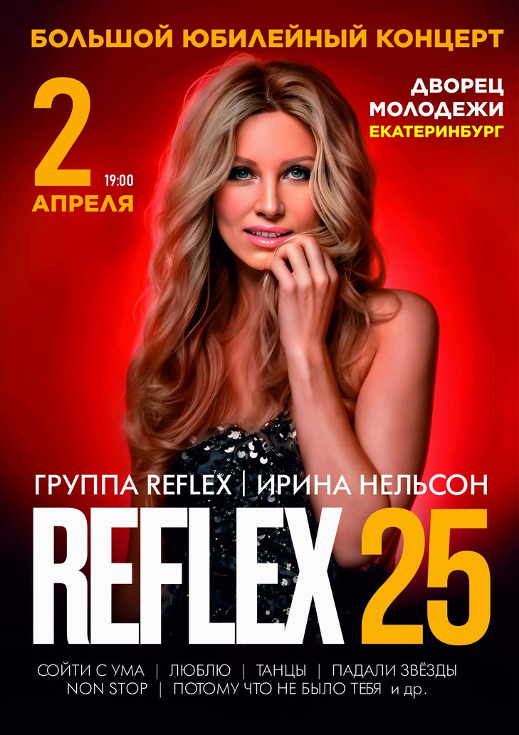 Ирина Нельсон - настоящая леди, обладающая рецептом вечной молодости! Золотой голос, тембр которого невозможно перепутать ни с кем. Reflex - самая популярная женская группа и законодатели музыкальной моды 2000х, России, 19 музыкальных наград и 5 премий «Золотой Граммофон».