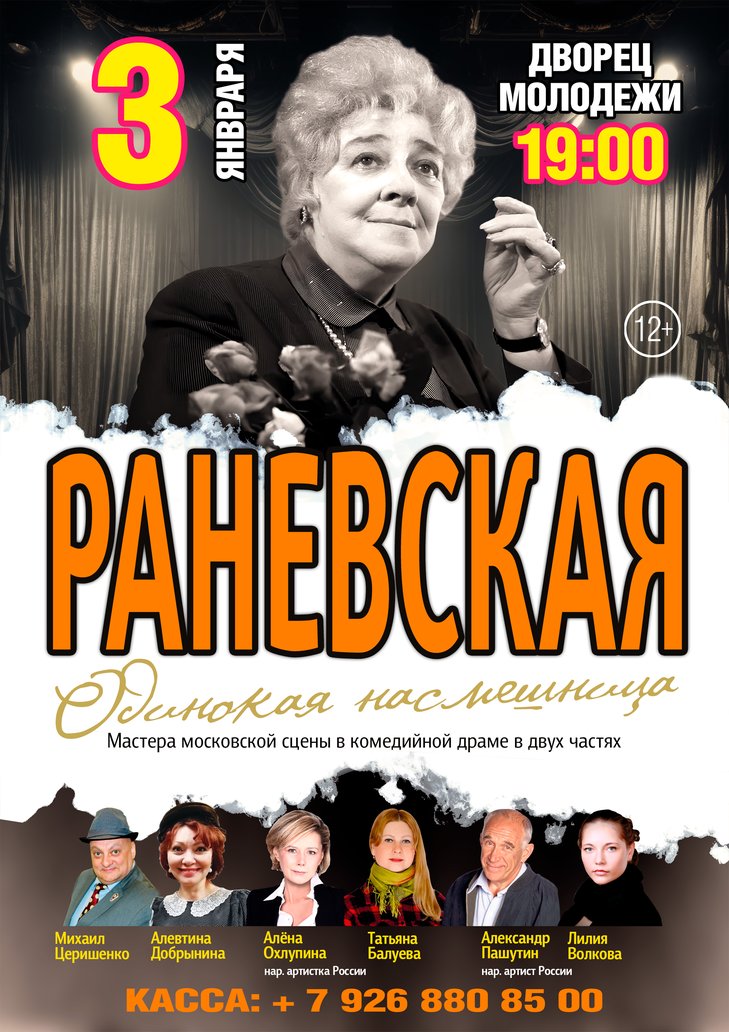 Псевдоним «Раневская» — из чеховского сада; судьба — из бурного XX века; слава — от сцены и кино. Её остроумие спасает от боли, а память о ролях — от одиночества. Мы слышим знакомые интонации, как будто из радиоприёмника детства: мягкая ирония, короткая пауза, точное слово. В этой квартире прошлое и настоящее садятся за один стол — и зритель узнаёт себя: в смешном, горьком, тёплом. В спектакле — подлинные интонации, остроумие и редкая в нашем театре честность: смеясь, Раневская говорит о боли, а рассказывая о боли — спасает смехом.